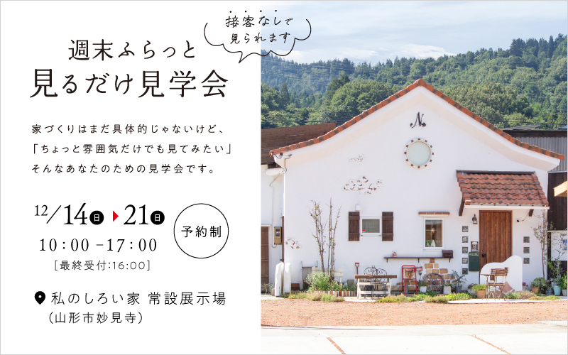 そんな声にお応えして、週末のお出かけついでに気軽にお立ち寄りいただける見学会を開催します。
